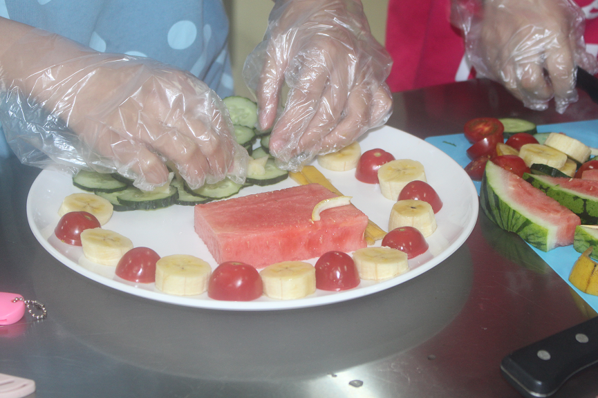小教学院周婉珍谈道:“此次水果拼盘活动提高了我的动手能力与审美能力。我非常享受水果拼盘过程中的乐趣。”